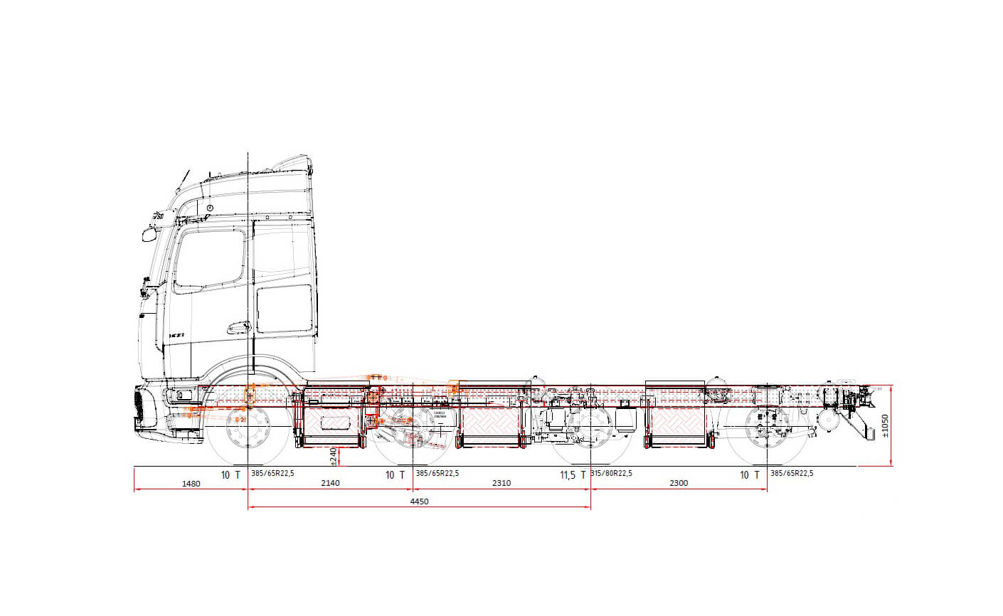 Home / Onderdelen / Ombouw Mercedes e-600 L6x2 naar “VELDHUIZEN TRUCKS” 8×2 met Wide Spread Gestuurde achteras (41,5T), Wielbasis 4.450mm