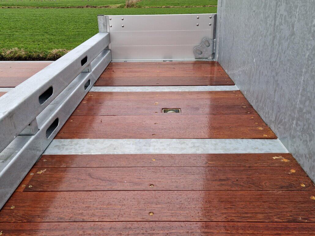 – hardhouten vloer ± 35 mm dik op de laadvloer