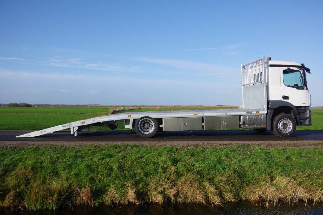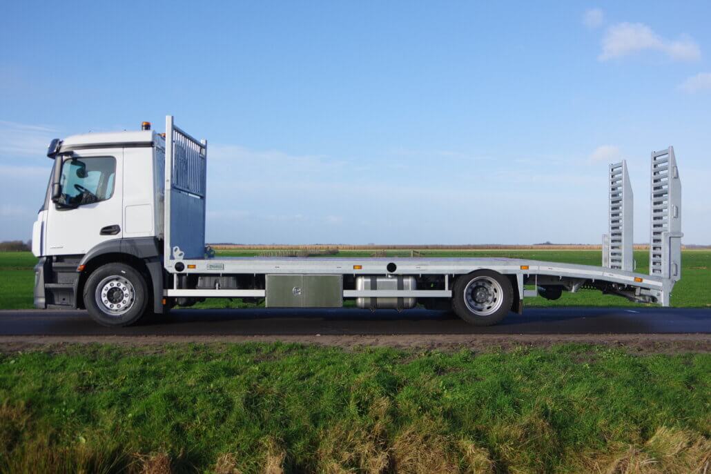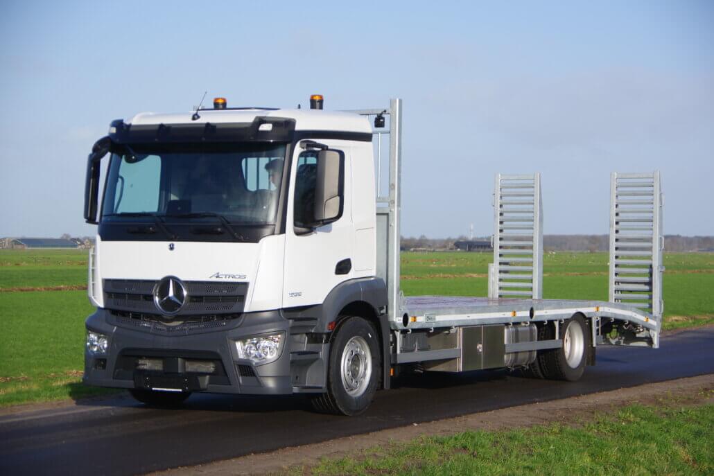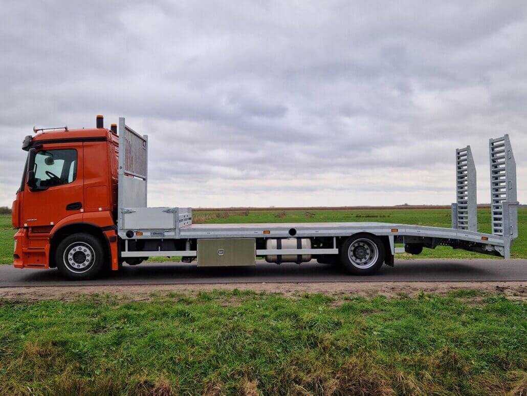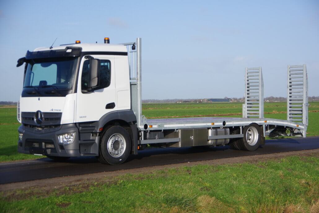 Monteren van opbouw op een Mercedes Actros 19.. LL t.b.v. een extra lage oprijvrachtwagen.