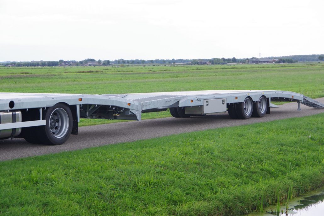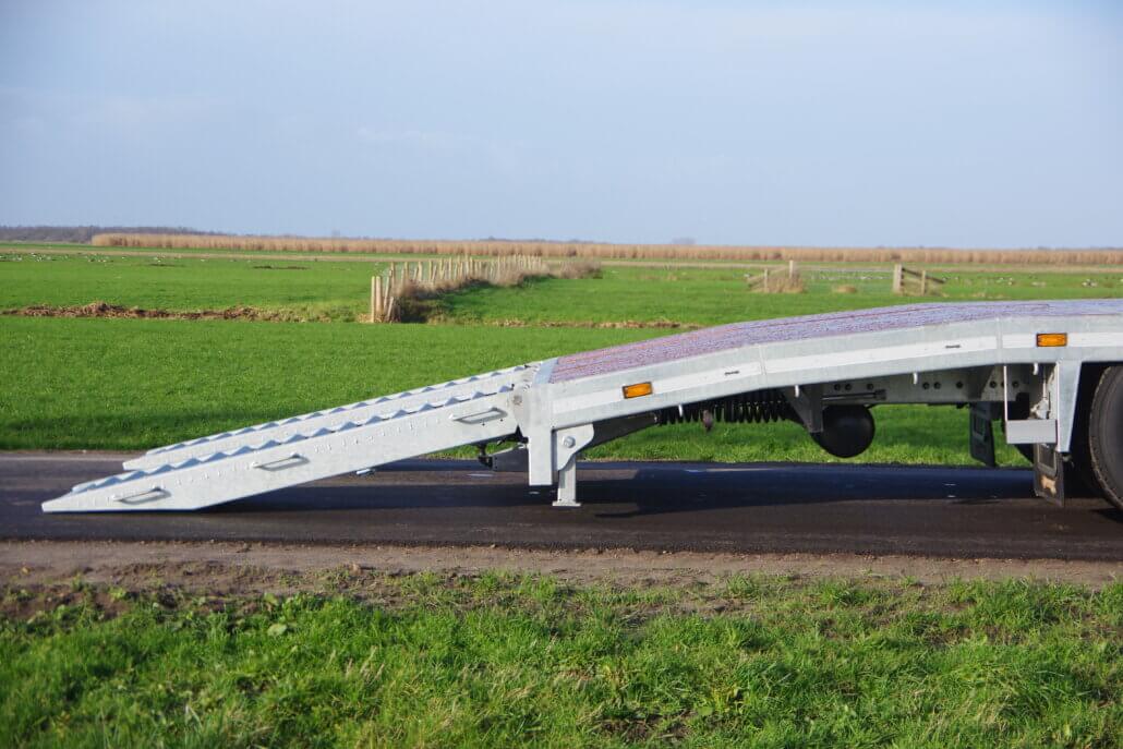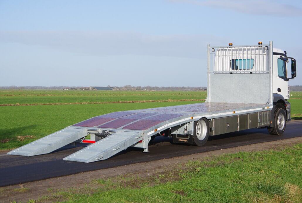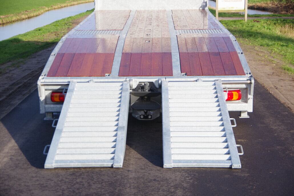 – 2 oprijgoten à 2,05 mtr. en 70 cm breed op RVS as (max. wiellast 5.000 kg)