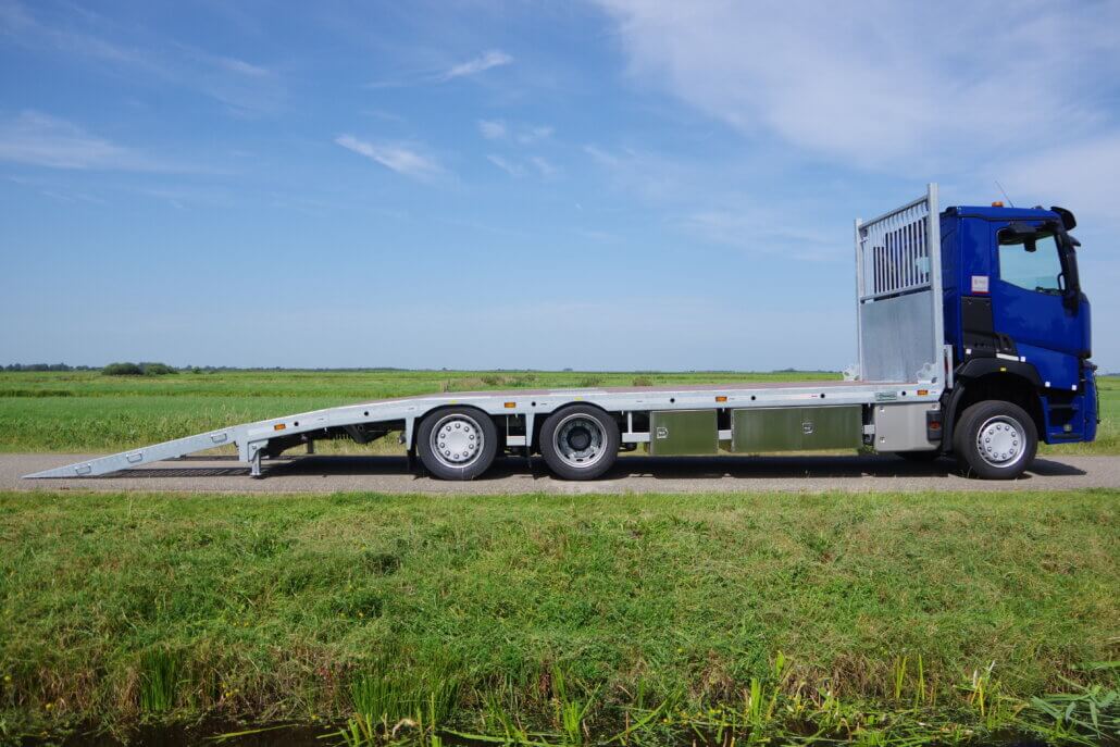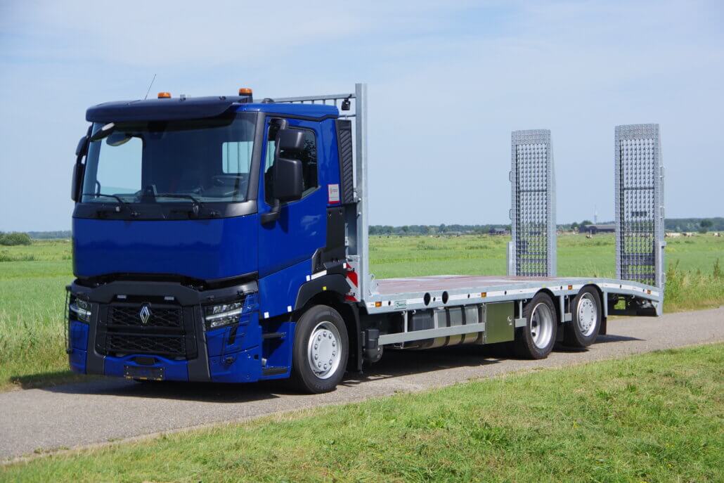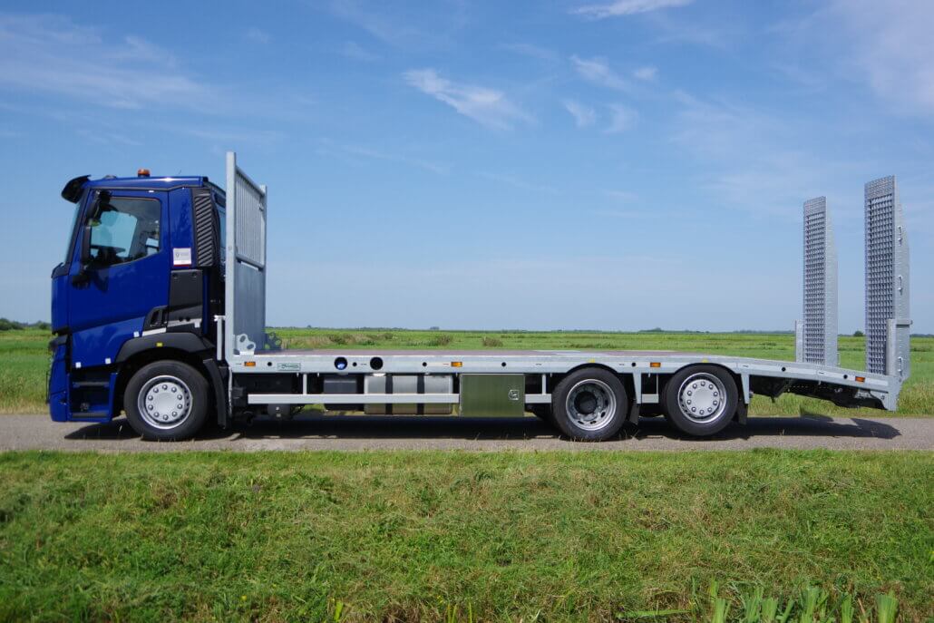 Monteren van opbouw 7,8 m op een Renault T-serie t.b.v. een extra lage oprijvrachtwagen.