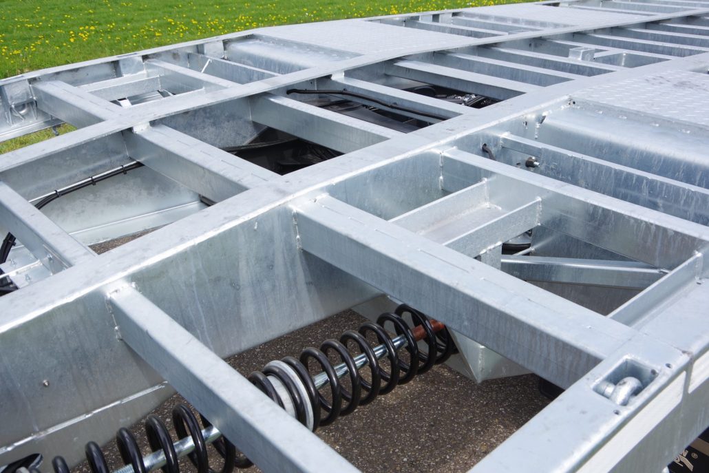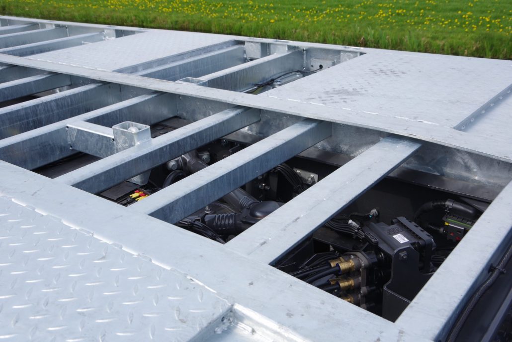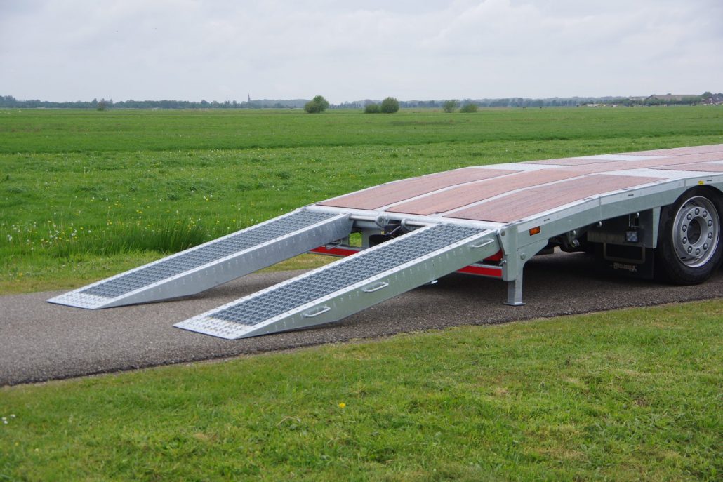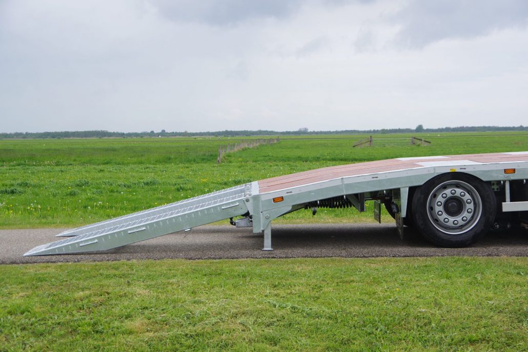 – 2 opklapgoten à 2,05 mtr. en 70 cm breed op RVS as (max. wiellast 5.000 kg)