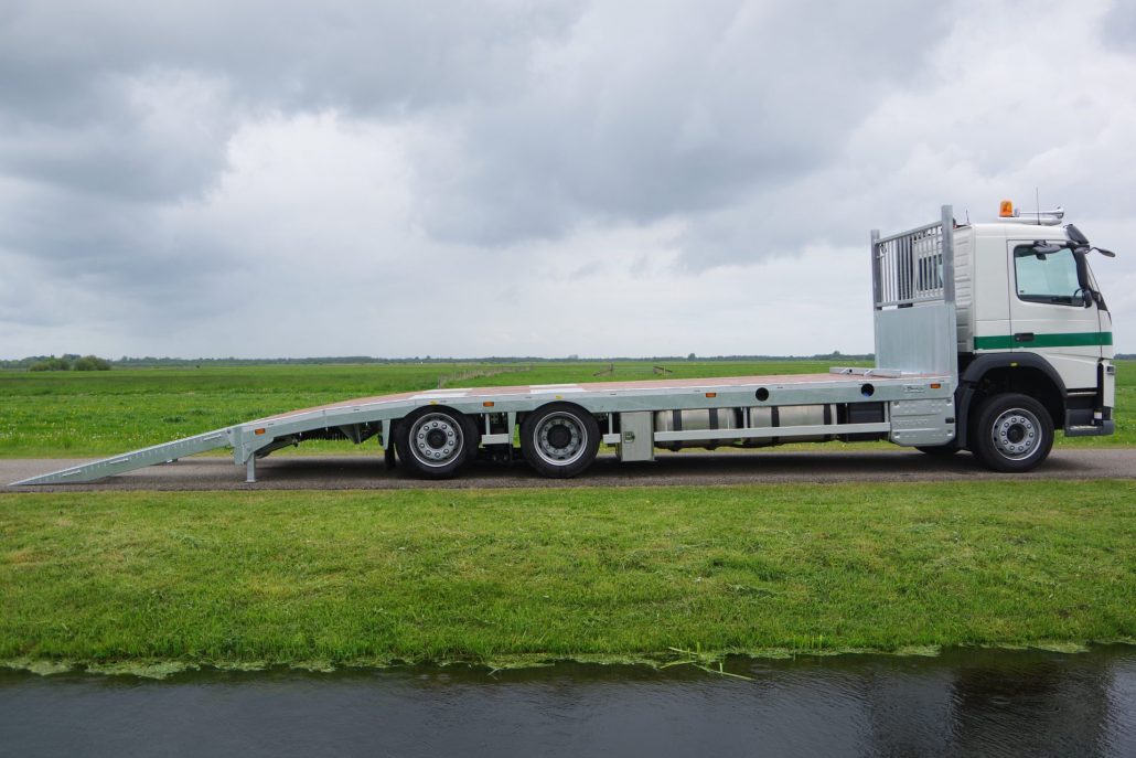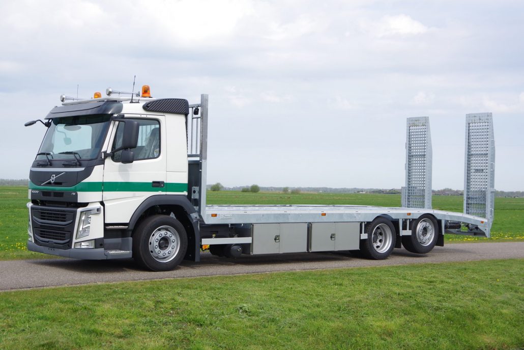 Monteren van opbouw op een Volvo FM t.b.v. een extra lage oprijvrachtwagen.
