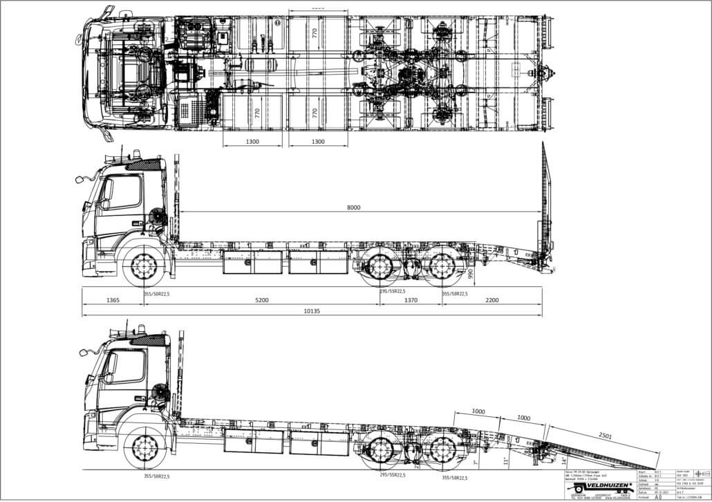 8,00 x 2,55 mtr. (wielbasis 5,20m) (opbouw gewicht ± 2.500 kg) € 37.900,=