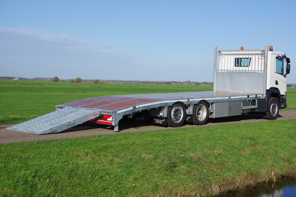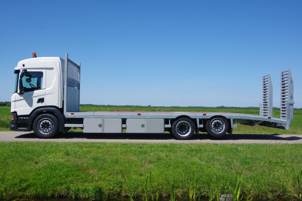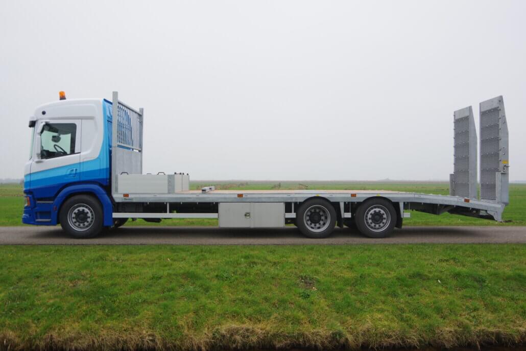 Monteren van opbouw 8,5 m op een Scania P-serie t.b.v. een extra lage oprijvrachtwagen (28,0T).