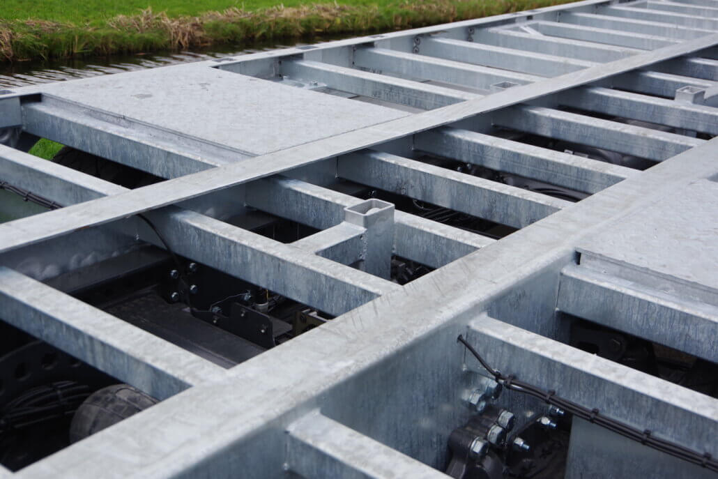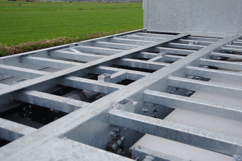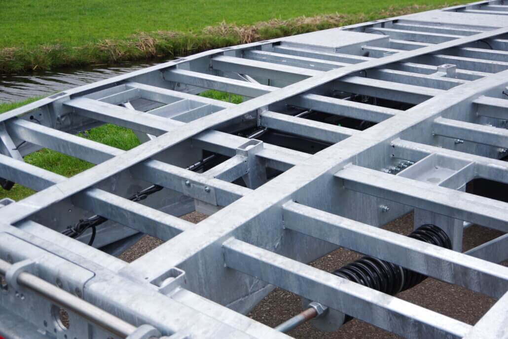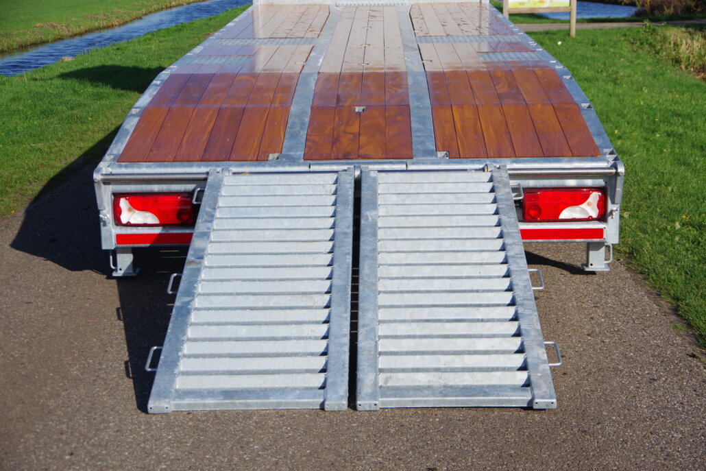 – 2 rijgoten à 2,05 mtr. lang en 70 cm breed op RVS as (max. wiellast 5.000 kg)