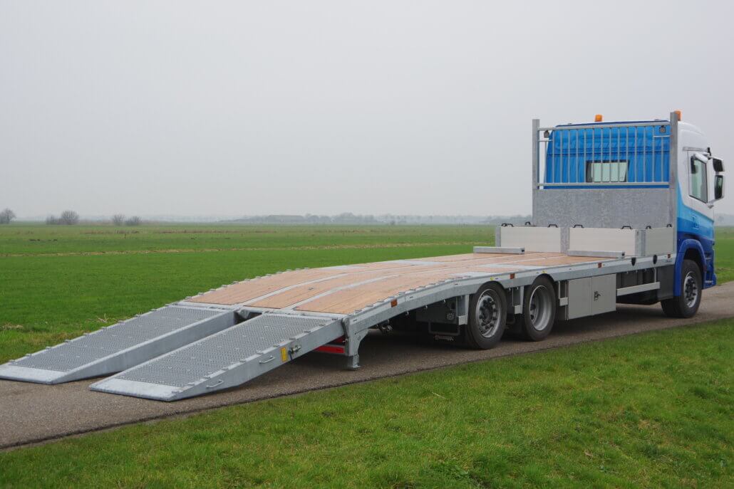 – achterste 200 cm van de laadvloer dubbel geknikt aflopend naar ±74 cm (zakstand ± 57 cm)