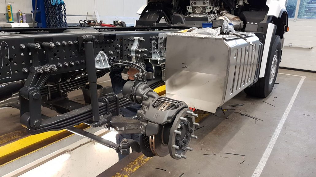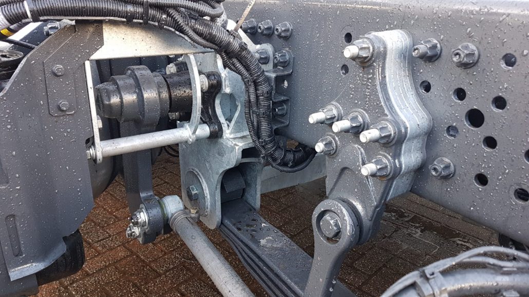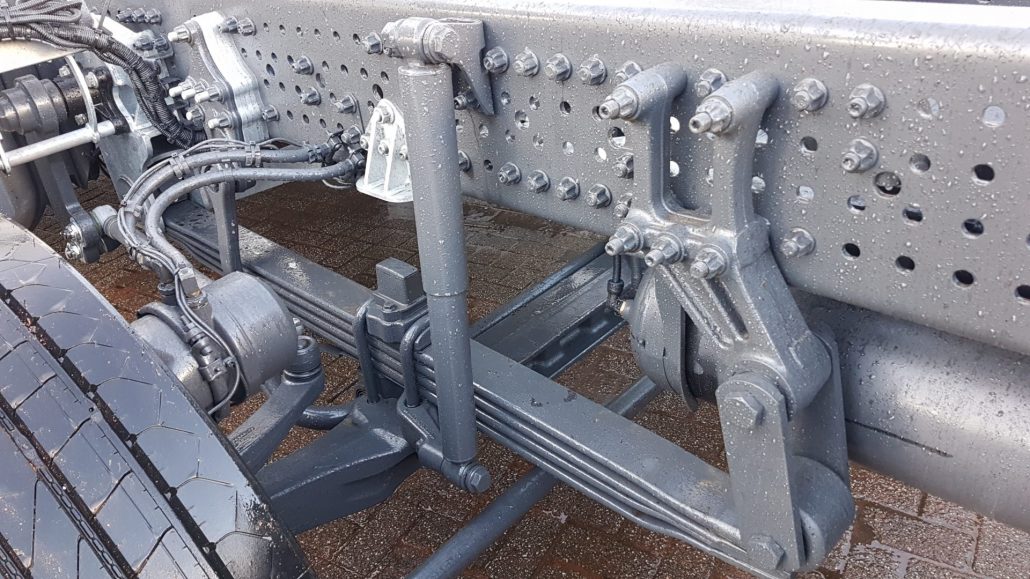 – demper verplaatsen van achter de 2e vooras naar voor de 2e vooras
