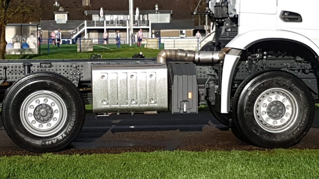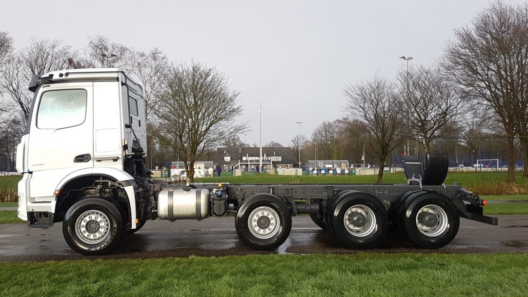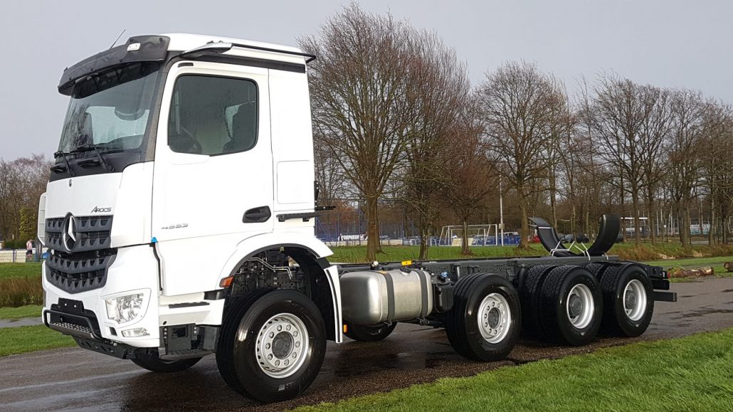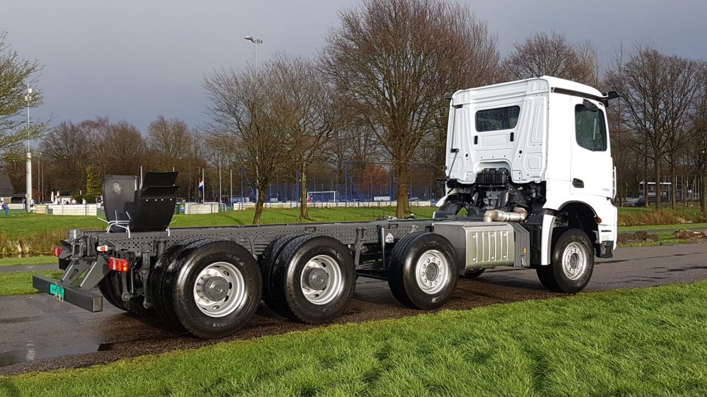 Ombouw Mercedes Arocs 8×4 verplaatsen 2e vooras en omkeuren naar 39,0T.