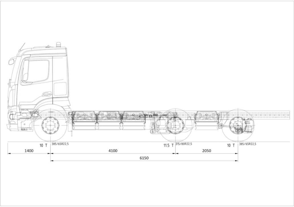 Ombouw Mercedes E-Actros 400 L6x2 naar “VELDHUIZEN TRUCKS” 6×2 met Wide Spread Gestuurde achteras (31,5T).