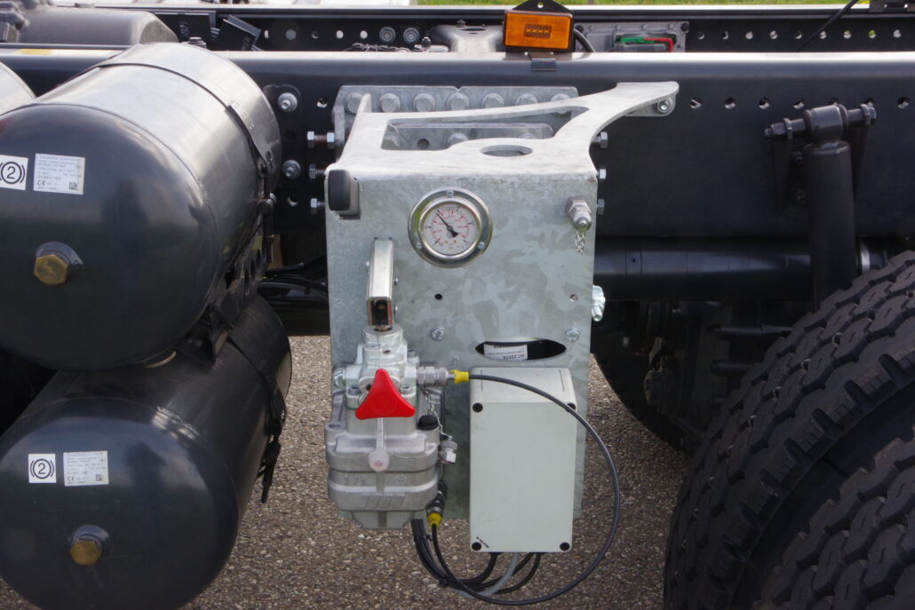 – 2 voorbanden wisselen naar 445/75 + vooras keuren op 11,5 T (34,5 T) € 3.315,=