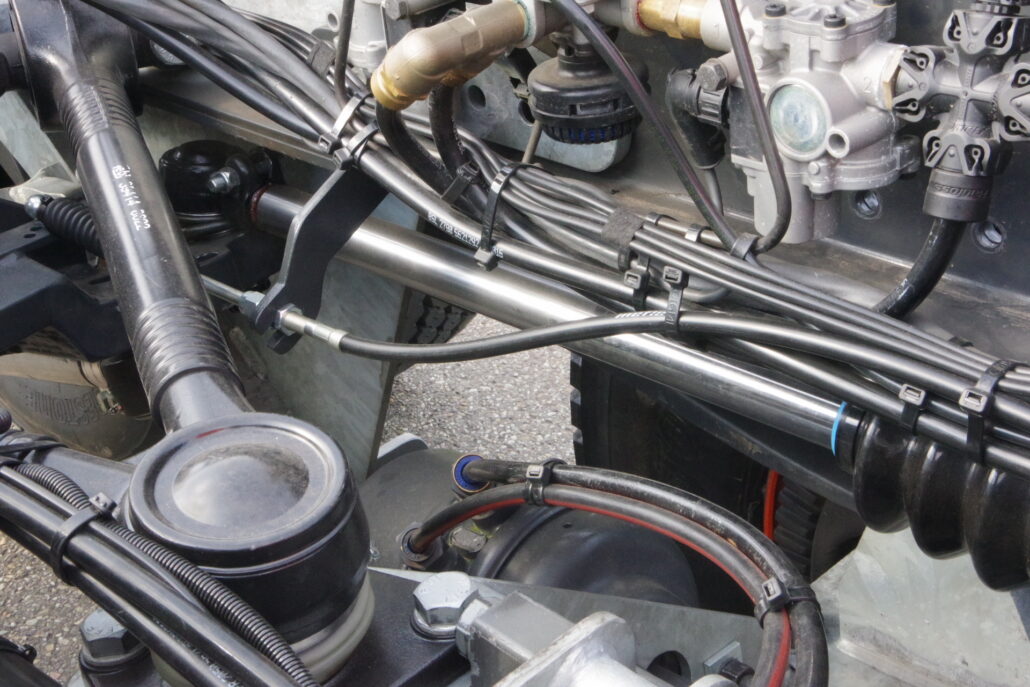 – stikstofbol monteren zodat 3e as niet stuurt boven 40 km/h