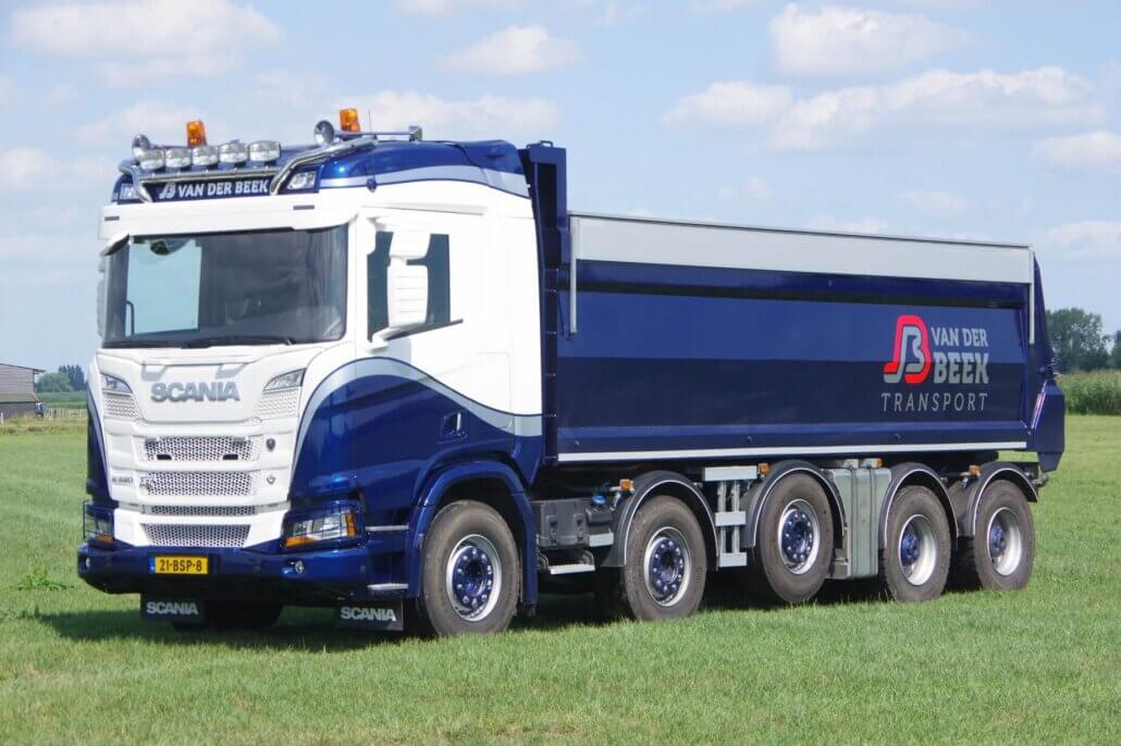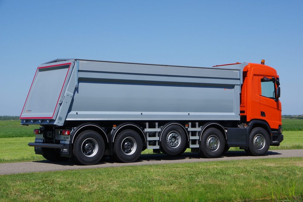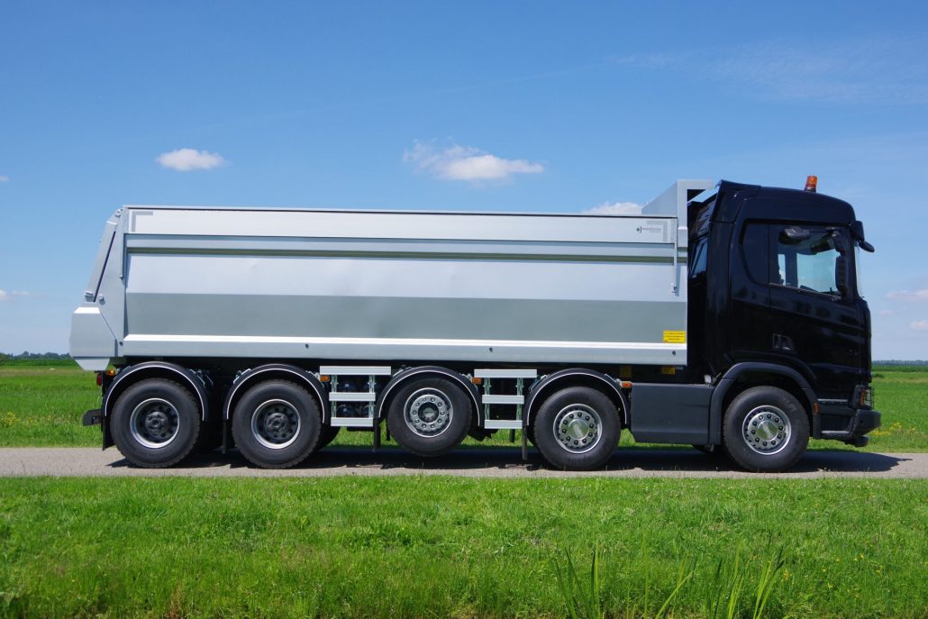 Ombouw Scania XT (V8 motor) 8×4 naar 10×4 met 10,0-tons gestuurde tussen as (49,0T).