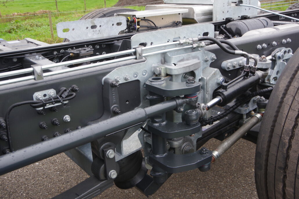 – luchtgeveerde 10,0-tons fusee gestuurde as monteren op ± 1,81 mtr. achter de 2e as